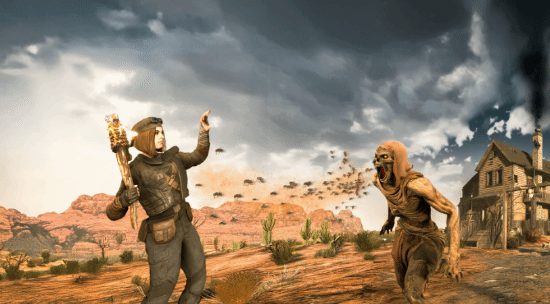 瘟疫喷吐者——一种新的特殊感染沙漠僵尸,可以吐出一群昆虫攻击玩家。近战武器对付这些昆虫群更加有效。