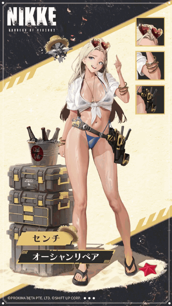 《胜利女神:妮姬》官推发布了桑迪的泳装展示,可以在7月份的任务通行证中获取。