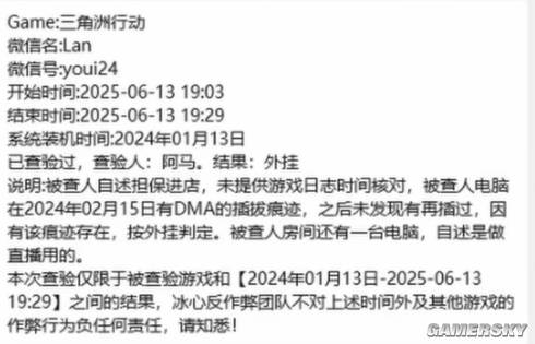 事情源自前《Apex》职业选手“蓝希嗷”想进陪玩店兼职,在花钱找冰心团队寻求“赛博良民证”时,却在检测后被告知曾有开挂纪录的结果。