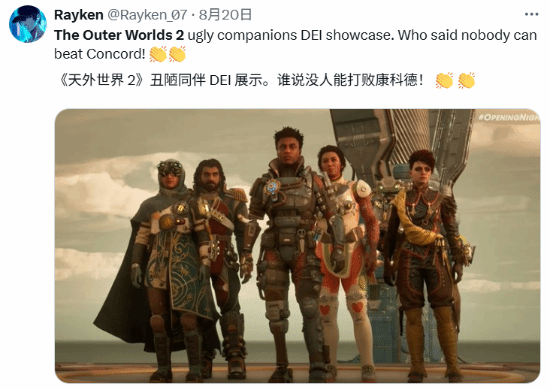 “丑陋无比!纯纯的DEI展示,谁说《星鸣特攻》没有对手的?”