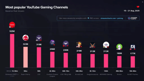 据StreamsCharts数据,《丝之歌》发售日视频峰值观众数达到323,297,平均观众数 107,000,使得Team Cherry的频道在8月21日当周跃居YouTube Gaming热门频道第二位。