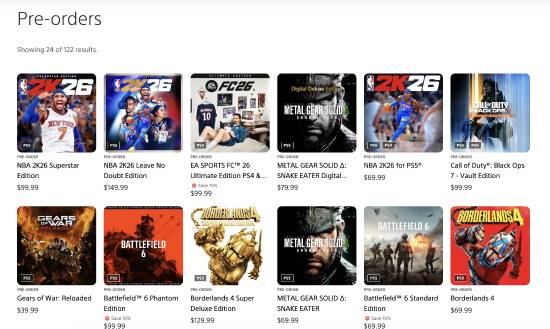 目前,在该排行榜上位居第一的是《NBA 2K26》,随后《EA Sport FC 26》和《合金装备3RE》。