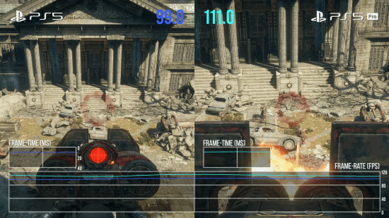 据Digital Foundry介绍,PS5 Pro在60帧模式下运行分辨率为1620p,经PSSR放大至4K;而120Hz模式则支持1440p,这与其他主机的60帧模式相同。PS5 Pro的真正优势在于The Coalition选择使用PlayStation的PSSR技术,而不是AMD的FSR。虽然PSSR并非总能保证最佳体验,但在《战争机器:重装上阵》中,它的确效果显著。