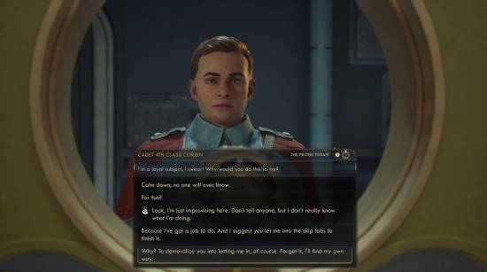 游戏的世界构建依然非常扎实,部分也得益于其浓厚的幽默感。它充满了强烈且直白的讽刺意味,嘲笑了太空背景下企业、政府以及它们之间的勾结。