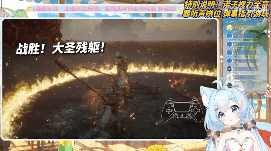 诺子喵呜在简介里表示:“2024年8月21日,我是全国第一个开始尝试打黑神话的盲人,成功打过第一个BOSS后,掀起了一波残障朋友一起来挑战黑神话的热潮。黑神话一周年那天晚上,我终于成功战胜了我第一次挑战的二郎神。第二天,我就接着挑战了大圣,但是在战胜石猿后就卡关了,一整晚也没有打败大圣残躯,对于视障人来说大圣许多声音不明显的攻击更让人难以捉摸。接着第三天,我在复战连战模式打败了许多其他的BOSS才找回了信心,终于在直播间的帮助下终于完成了六根合一的真结局。”