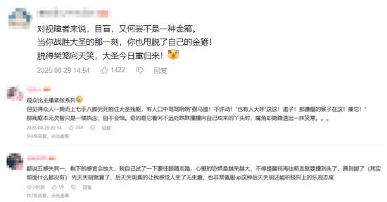 在评论区里,不少玩家对诺子喵呜所取得的这一成就表示赞叹,有玩家表示:“对视障者来说,目盲,又何尝不是一种金箍。当你战胜大圣的那一刻,你也甩脱了自己的金箍!脱得樊笼向天笑,大圣今日重归来!”