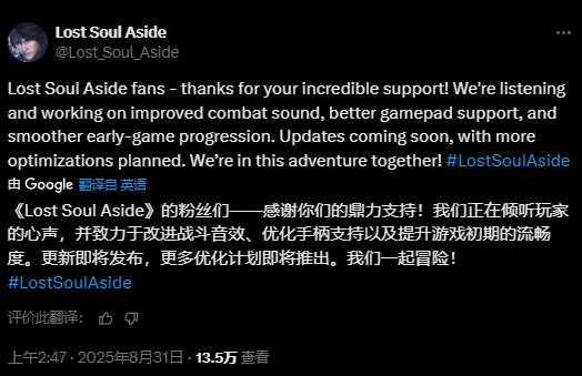 日前,《失落之魂》官方公开了游戏的后续优化计划,未来将在战斗音效、手柄适配方案以及游戏前期流程这三个方面进行重点优化。