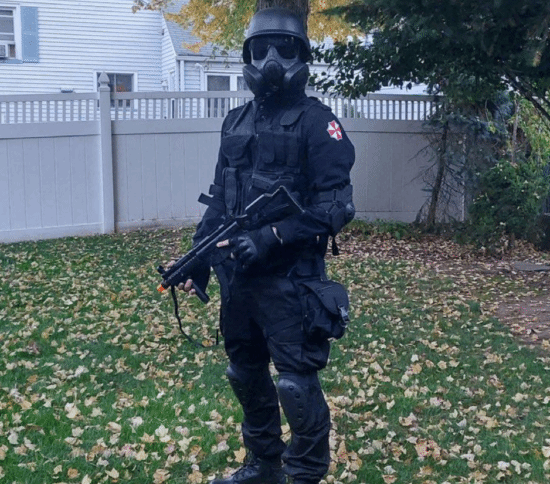 据介绍,他COS的角色是《生化危机》系列中的传奇雇佣兵“死神”汉克,并携带汉克的经典配枪MP5。该模型枪还拥有标志性的橙色枪口,以显示这是一件道具武器。但这似乎不足以将他与真正的枪手区分开来,警方还是将他制服了。