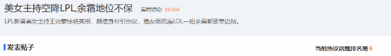 近日,美女主持王诗蒙惊艳亮相LPL,凭借其出色的颜值和身材引发了玩家们的热烈讨论。截止至发稿时,话题“美女主持空降LPL,余霜地位不保”登上了贴吧热议榜。