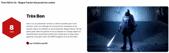 IGN法国公开了虚幻5类魂游戏新作《地狱即我们》的媒体评测文章,给出了8分的成绩。