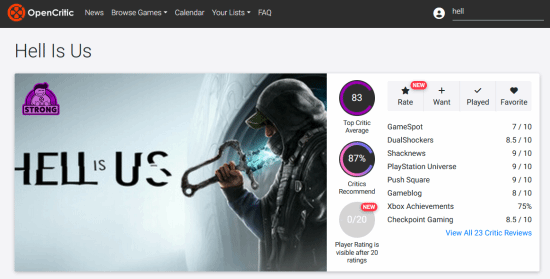 《地狱即我们》媒体评分现已解禁,截至发稿,opencritic共收录了23条评测,均分为83,推荐度为87%。