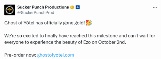 另外值得一提的是,本作在前几日曾官宣已经进厂压盘,并表示已经迫不及待想让玩家们在10月2日体验虾夷之美。