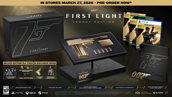 售价299美元(折合约2135元人民币),包含游戏本体,外加:黄金手枪模型(带底座与隐藏暗格)、官方认证证书、磁吸钢铁外壳和游戏完整光盘,豪华版奖励和独家皮肤(黄金手枪、黑曜金套装)。