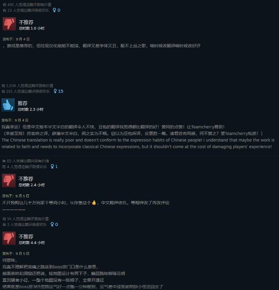 在国区的评价里,很多玩家表示《空洞骑士:丝之歌》的中文翻译过于糟糕,颇有网文+古风文言文的感觉。除此之外,《空洞骑士:丝之歌》未开预购以及游戏的难度过高等方面也成为了玩家吐槽的地方。