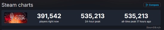 当然,也有游戏不惧竞争。与《丝之歌》同一天上线的虚幻5类魂新作《地狱即我们》,虽然在Steam上获得了90%的好评率,也收获了一些积极评价,但热度完全无法与《丝之歌》相比。《地狱即我们》峰值在线人数不足四千,而《丝之歌》已突破53万。有玩家为《地狱即我们》制作梗图,心疼其风头已完全被《丝之歌》抢走。