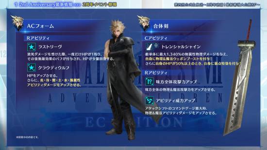 同时,多种角色专属武器与服装也将在同期通过活动和卡池陆续实装,其中包括萨菲罗斯的“正宗”“虎彻”“天之丛云”等武器,以及克劳德的“合体剑”“Ragnarok”等强力装备。此外,克劳德还将获得“AC形态”专属外观。