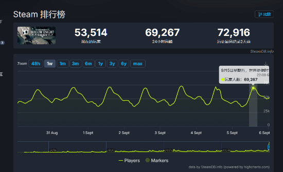 值得一提的是,昨天仍有接近7万人在游玩初代《空洞骑士》,看来也有不少新玩家入坑,想要先打通初代再体验这款续作,享受“无缝幸运”!