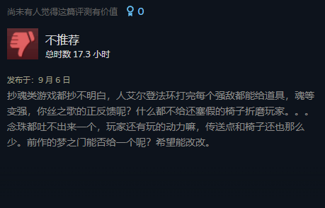 在近期的玩家评价里,《空洞骑士:丝之歌》的翻译问题已经不是最大的问题,很多玩家将矛头对准到了游戏的难度、敌人配置以及正反馈等方面,认为游戏似乎根本就不在乎它们,设计的很是不合理。