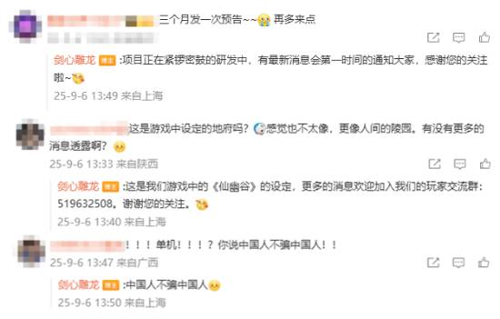 在评论区里,《剑心雕龙》官方确认项目正在紧锣密鼓的研发中,有最新消息会第一时间通知玩家,并再次确定《剑心雕龙》为单机游戏,说道:“中国人不骗中国人。”