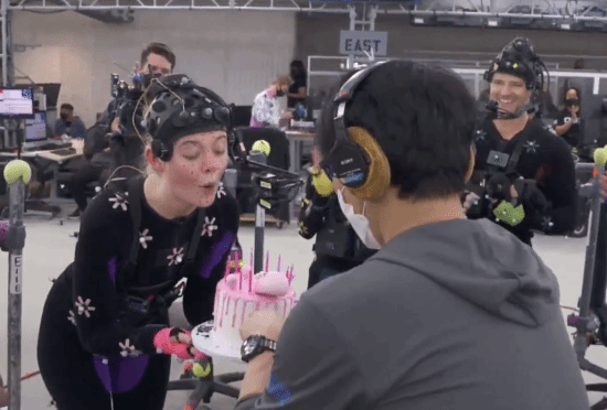 小岛秀夫回忆称,拍摄当天正好是“明天”的演员艾丽·范宁的生日,团队还特意瞒着她准备了一份惊喜。从视频中可以看到,当小岛端着蛋糕出现时,其他演员同时唱起了生日快乐歌,而艾丽·范宁则开心地合不拢嘴!