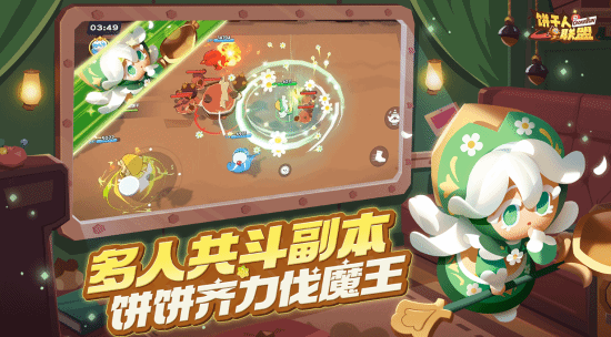 而核心玩家则能在组队玩法中找到策略乐趣。游戏内拥有数十位性格鲜活、能力独特的饼干角色,玩家可为其定制装备、培养升级,并通过阵容搭配最大化战力。更可与好友实时连线组队,共同挑战高难度共斗副本——合力猛攻强大首领、协同突破层层围堵,以团队默契创造翻盘奇迹,携手守护松饼塔的和平。战场之外,社交玩法同样丰富。玩家可组建、打造温馨的饼干人公会,完成公会委托贡献自己的力量,还可以与公会伙伴一起参加公会战,争夺赛事荣耀。从单人到多人,从战场上到战场外,《饼干人联盟》把“宠玩家”贯彻到底!无论是一个人静静甜”,还是“一群人热闹嗨”,都能在这颗“糖罐子”里找到自己的专属快乐。