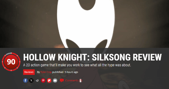 该评测称,Team Cherry为这个游戏塞入了相当多的关卡、怪物、任务,像是一个无止境的真实2D世界。