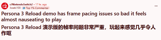 日前,Reddit玩家Joseki100发布了一篇长帖来谈自己游玩《女神异闻录3 Reload》Switch 2试玩版后的感想,认为Switch 2试玩版的帧率很不理想。Joseki100表示,试玩版在掌机模式下的画面非常清晰,似乎完全匹配屏幕原生分辨率,图像边缘没有明显的锯齿,可能还应用了某种抗锯齿技术。