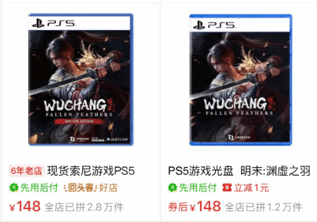 截至发稿前,拼多多部分店铺的《明末:渊虚之羽》PS5实体版售价不到150元,相比298港币的原价而言已经非常划算,价格在未来或许还有降低的趋势,有耐心的玩家可以多花点时间等待。