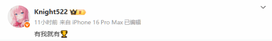 此外,赛后Knight选手还在社交媒体发文庆祝:“有我就有冠军!”