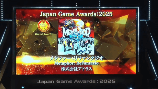 《暗喻幻想:ReFantazio》荣获Japan Game Awards:2025(日本游戏大奖2025)“年度游戏大奖”!