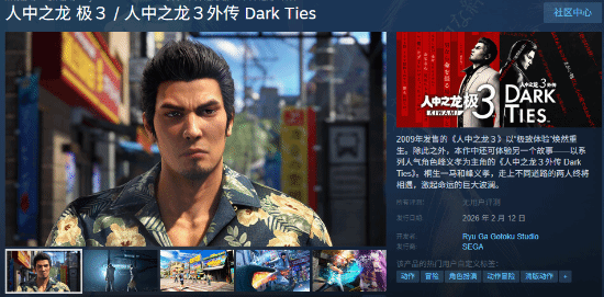 《如龙:极3》和《如龙3外传:Dark Ties》合集现已开启预购,将于2月12日正式发售,登陆PC、PS4、PS5、Xbox Series X|S、Switch2。标准版268元(港服438HKD),豪华版338元(港服548HKD)。
