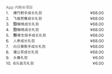 截至发稿前,《植物大战僵尸3》在苹果国区商店的“益智解谜”类别免费游戏榜单里排行第一,根据页面显示,《植物大战僵尸3》有10项游戏微交易项目,其中爆竹射手成长礼包、飞扇芭蕉成长礼包、猕猴桃成长礼包等8种礼包的价格为68元,头像礼包和6元首充礼包的价格为6元。
