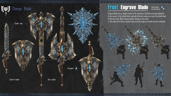 除此之外《怪物猎人:荒野》的开发团队还为冠军准备了寄语:这次我们也非常纠结,但只能制作一款,因此怀着尽可能迎合广泛人群喜好的愿望,最终选定了这一设计。破碎的镜面、被封印在镜中的谜之怪物、撕裂的空间、最终融合成一面完整的镜子……光是听到这些关键词就令人兴奋不已。细腻的金色装饰与闪耀碎片构成的唯美意象,与倒映其中的怪物野性魅力形成强烈反差,最终融合成极具视觉冲击力的酷炫设计。突破常规地以破碎飘浮的镜面作为基础形态,而非完整方形镜面,这种将耐人寻味的复杂轮廓作为核心的设计理念可谓别出心裁。不仅武器本身的外观设计引人注目,其独特的视觉效果,大量漂浮物逐渐融合为一个整体,也让我深感这一创意在表现力上极具魅力。我们正全力以赴打造一款帅气的大剑武器,希望能让那些以往只接触其他武器类型的玩家也产生“偶尔试试大剑吧”的念头。敬请期待最终成品。