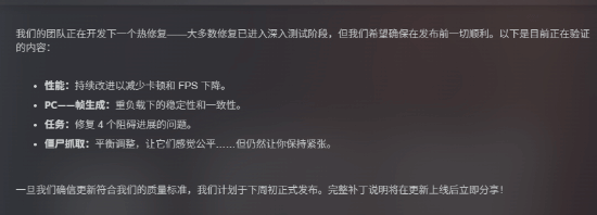 此外官方表示正在着手优化以下内容,将于下周推送补丁: