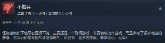 而给出差评的玩家则对本作的动作系统表示了强烈不满,认为其破坏了游戏体验。