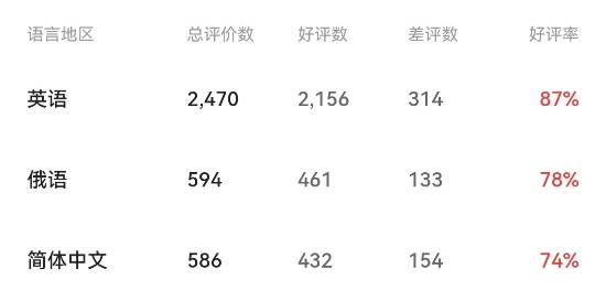 游戏目前已经正式发售,根据数据,本作在Steam上的整体好评率为87%,评价等级为“特别好评”。但简中好评率仅为74%,评价等级为“多半好评”。