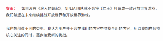如果没有《浪人崛起》,我们可能不会将《仁王》改为开放关卡。未来也希望挑战开放世界和开放关卡,并尝试其他类型游戏。在保留原有核心的同时,逐步进行新的尝试。