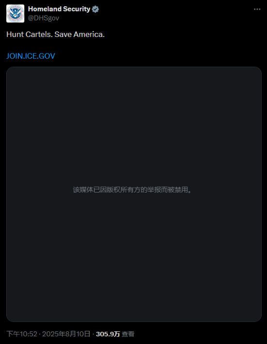这种方法是完全可行的,因为在今年8月,说唱歌手Jay-Z的歌曲就出现在了一个类似的招聘视频中,视频中出现了探员和特工突击检查移民的镜头。虽然那篇推文未被下架,但视频却显示“该媒体已因版权所有方的举报而被禁用”。