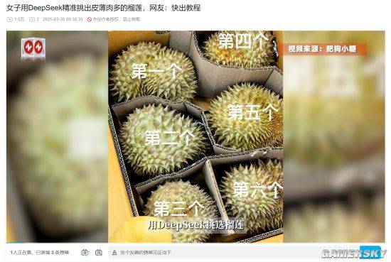 地球OL的普通玩家会告诉你交给热心的摊主,一切看脸;进阶玩家深知除了运气之外,还需要学习一些技巧;“邪修”玩家已经开发出了用机制逃课的“邪道”——把榴莲图片上传DeepSeek等AI工具进行鉴定。