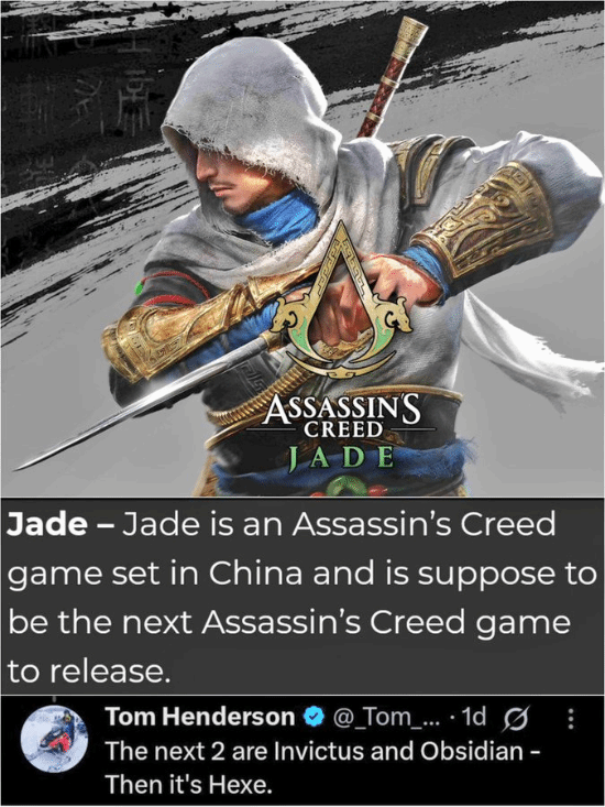 Zephryss指出,今年5月知名记者汤姆·亨德森曾透露,设定在古代中国的《侠隐》原本应是下一款发布的《刺客信条》游戏。但在今年10月,他又声称接下来的两款《刺客信条》游戏是《代号Invictus》和《代号Obsidian》,随后是《代号Hexe》。完全没有提到《侠隐》。