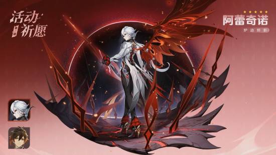 在版本第二期角色活动祈愿中,角色活动祈愿「炉边烬影」将会开启,限定五星角色「孤暝厄月 · 阿蕾奇诺(火)」将迎来概率UP,而限定五星角色「尘世闲游 ·钟离(岩)」则在角色活动祈愿-2「陵薮市朝」中迎来返场。