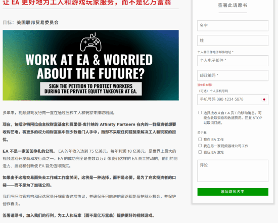 该组织表示,这项涉及550亿美元的交易将进一步巩固少数资本巨头的财富与权力,却对玩家与劳动者的担忧没有采取任何措施。声明强调:"EA年收入75亿美元、年利润超10亿美元,是世界上最大的游戏开发商与发行商。EA的成功完全是因为上万名员工的推动,是他们的创造力、专业技能与创新让EA值得被收购"