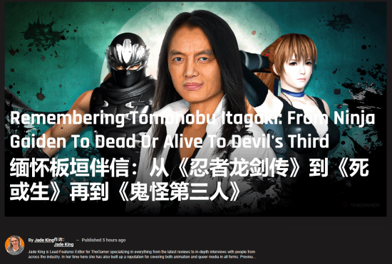 但比起《死或生》,人们更会记住的是他将《忍者龙剑传》复活,并将其打造成史上最出色的动作游戏之一这一传奇功绩。