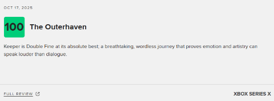 《Keeper》是Double Fine制作组的巅峰之作,这场无声的旅程令人叹为观止,证明了情感与艺术比对话更能打动人心。