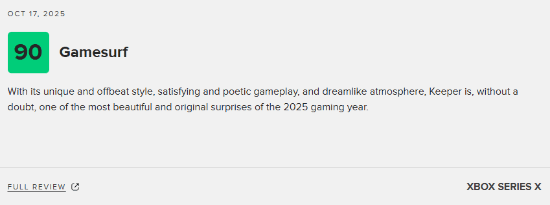 凭借其独特新颖的风格、令人满足又富有诗意的玩法,以及梦幻般的氛围,《Keeper》无疑是2025年游戏年度中最惊艳、最富创意的惊喜之作。