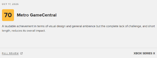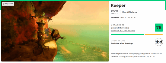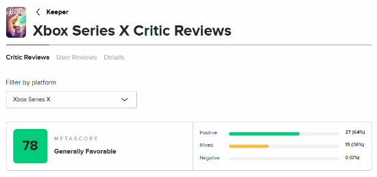 目前游戏的M站媒体评分已经解禁,截至发稿前,共有44家媒体对本作进行评测,媒体均分为78分(本文会针对评分情况持续更新),其中Xbox Series X平台的评分为78分,PC平台的评分为83分。