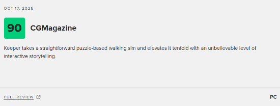 《Keeper》以解谜为基础的步行模拟玩法为基底,更以难以置信的互动叙事层次将其升华了十倍。