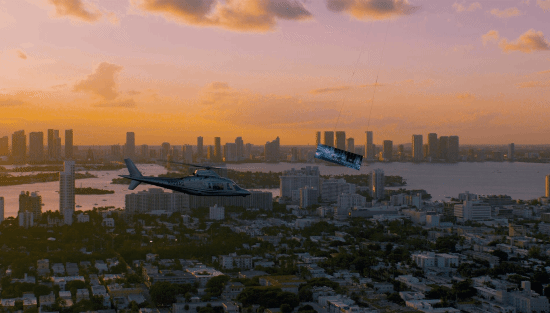 活动采用先进体育转播技术,将社区经理在直升机内的实机操作画面,实时传输至由Heli-D公司打造的空中巨屏。这场高精度协作不仅彰显了游戏强调的“精准、技巧与突破极限”精神,更重新定义了游戏发布活动的创意维度。