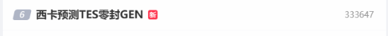 这一消息引发了网友们的热议,截止至发稿时,话题“西卡预测TES零封GEN”已经登上了微博热搜榜第6位。有玩家吐槽,“别的我都同意,滔博那场比分是不是写反了?”