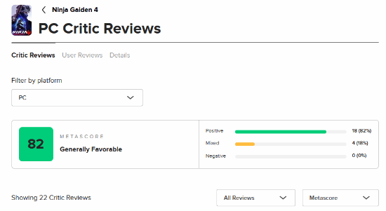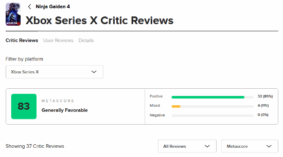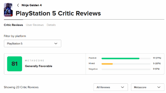 《忍者龙剑传4》是一款高速动作游戏,由Team Ninja和白金工作室合作开发,于今日(10月21日)正式发售。目前游戏的M站媒体评分已经解禁。